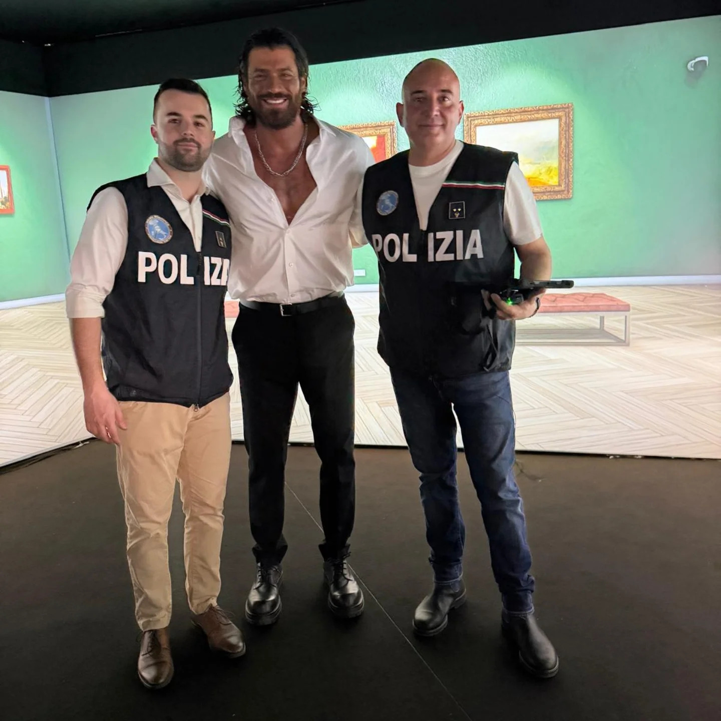 На мероприятии также присутствовал актер Джованни Наста, сыгравший агента Тури в сериале Mediaset.